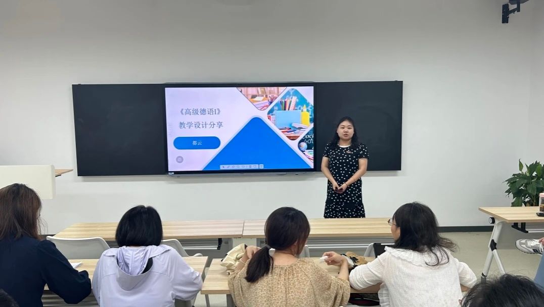 接着,德语专业的都云老师分享了《高级德语Ⅰ》课程的教学设计。她重点强调了课程思政的有机融合,学生围绕阅读材料进行讨论,在提高语言能力的同时,树立正确的价值观和道德观。这种方法不仅丰富了课程内容,还帮助学生在提升语言能力的同时,树立正确的价值观和社会责任感。