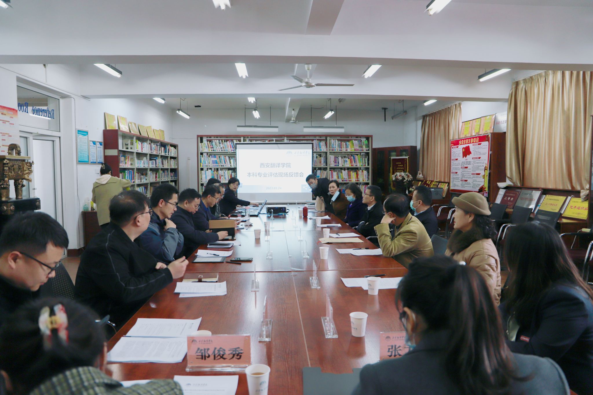 会议邀请西安外国语大学张世胜教授、曹韦教授、赵红教授和孙金秋教授,以及我校史晓琴教授和杨秀华教授作为现场评估专家。pp电子游戏平台官网副校长武忠远出席会议并致欢迎词。教务处副处长孟贤军、教学质量评估处副处长柳国勇、教务处教研科科长郑军、教务处教务科科长寇渊涛、pp电子游戏平台官网院长李庆明、副院长吴震、综合办主任张青丽及参评专业负责人参加了会议。会议由pp电子游戏平台官网副院长吴震主持。