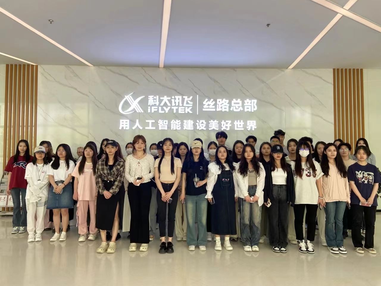 2024年5月14日,国际语言文化学院2023级法语(专升本)专业的46名同学在蒲雯老师的带领下前往科大讯飞丝路总部进行专业实习。