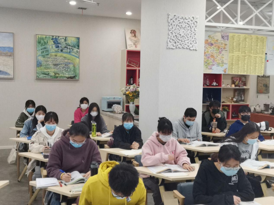 学生在法国文化体验馆进行《旅游法语》课程学习