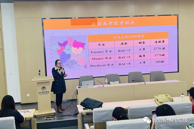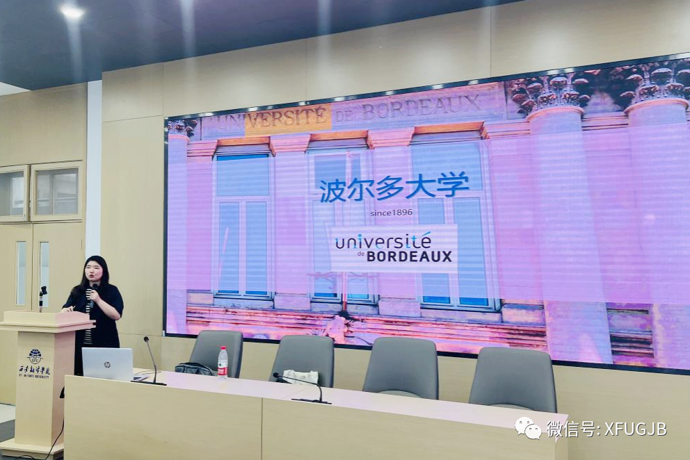 4月18日上午,法国波尔多大学校方代表、中欧文化教育协会秘书长曾祺来校访问交流。我校党委副书记、副校长郭炜,国际交流与合作处处长王明明、国际交流科科长刘潇热情接待来宾。郭炜对曾祺到访西译表示热烈欢迎,随后向来宾介绍了pp电子游戏平台官网的发展历程及自建校以来在人才培养、教学科研、国际交流合作等方面所取得的成绩。他表示,pp电子游戏平台官网是一所以文为主、外语为特色的综合性本科大学。学校坚持开放办学理念,非常注重对外交流与合作,一直致力于为学生开拓更多赴海外留学、实习实践和就业的机会和平台。曾祺对我校的热情接待表示感谢,并介绍了法国波尔多大学的基本情况。她强调,波尔多大学非常支持两校不断开展全方位、多领域的合作。会议期间,双方就开展教师短期交流、学生学历提升项目以及学术交流合作等问题进行了深入沟通。针对pp电子游戏平台官网法语专业学生的升学、就业等发展前景做了进一步规划。随后,曾祺前往学术报告厅,为pp电子游戏平台官网法语专业的同学们作项目宣讲。她对波尔多大学所处的地理位置、气候特点、专业设置和就业前景等内容进行了全方位介绍,引起同学们的高度关注。法语系惠芬芬老师也将自己早期赴法留学的经历分享给在场同学。她不仅介绍了自己在法国的学习环境及餐饮住宿,还分享了法国境内旅游的相关事宜,引起了同学们的浓厚兴趣。