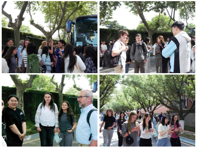到校后,法语系学生热情接待了来访法国学生,采取“结对子”形式,让中法两国的学生能够更加深入地进行组队互动交流,共同参与一系列的学习和文化体验活动。