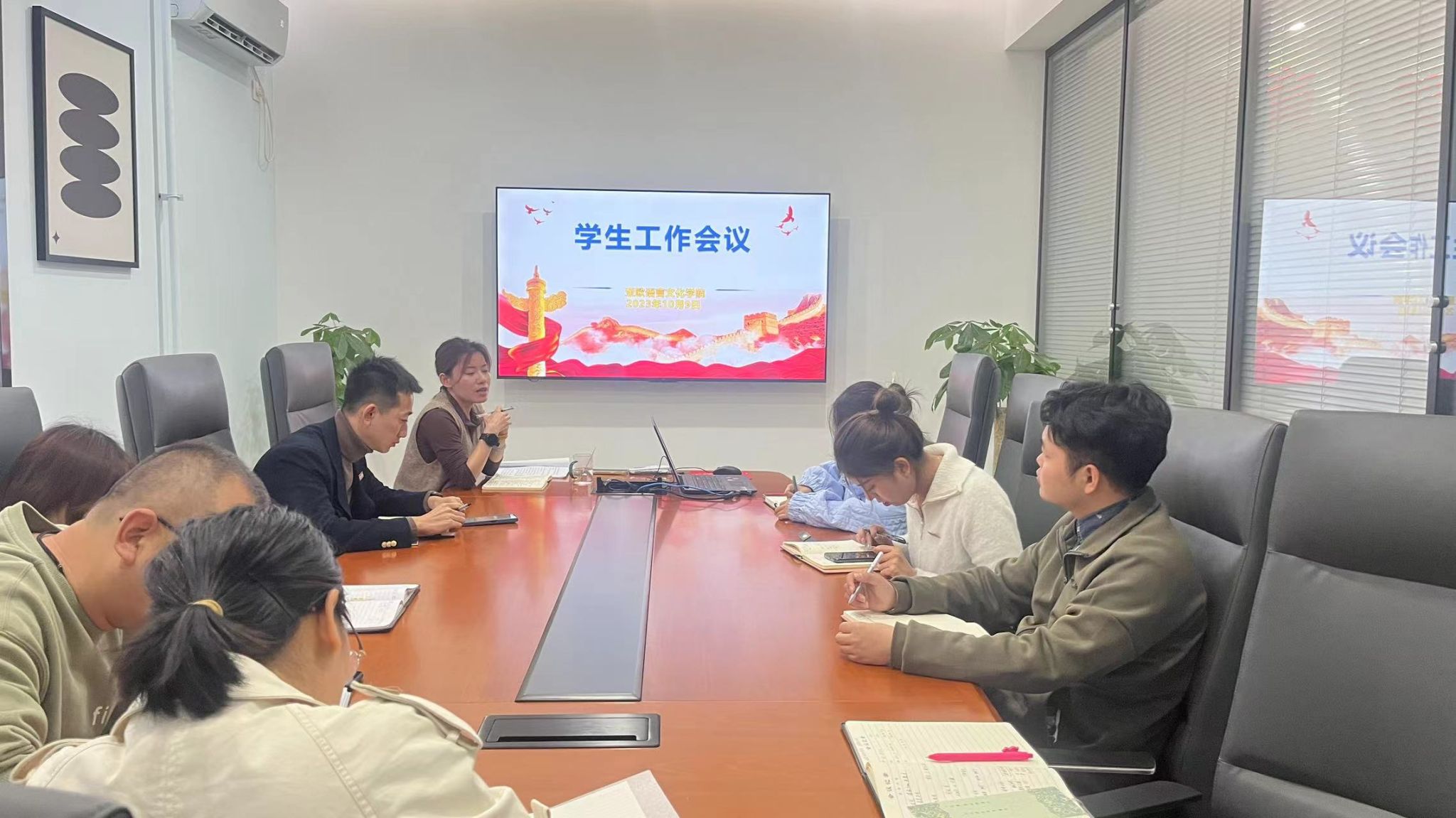 尹娜就开学以来大学生思想政治教育、学生日常教育与管理、学风建设等方面存在的问题进行了简要通报,同时就近期的工作做了梳理和部署。她强调,针对学风建设,各辅导员要常抓不懈,要严抓早晚自习的纪律,并逐步提升学生上课的前排就座率、配合率。她希望各辅导员能够厘清工作思路,把握工作重点,持续加强整顿,及时发现并解决问题,调动学生骨干的积极性,压实责任,落实落细学生教育、管理、服务等各项工作。