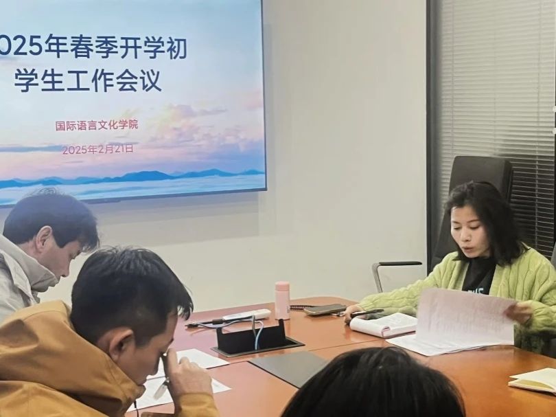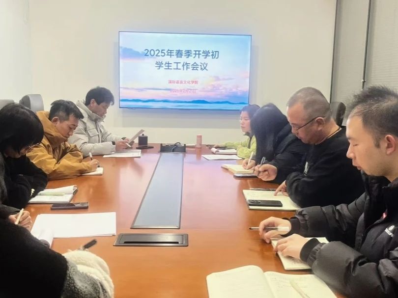 为确保新学期学生工作顺利开展,2月21日下午,国际语言文化学院在三号楼创咖会议室召开2025年春季开学初学生工作会议。学院党委书记、副院长宇文永康,综合办副主任尹娜,团总支书记陈福礼及全体辅导员参加会议。