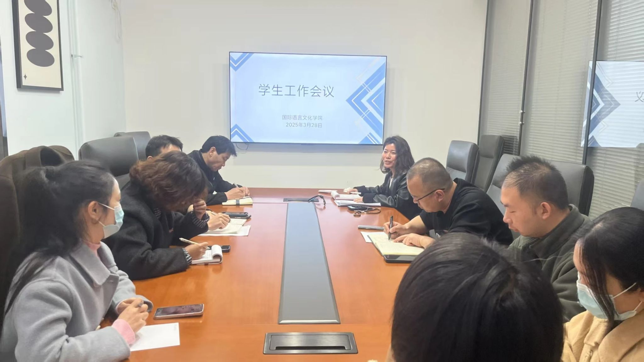 3月28日上午,国际语言文化学院召开学生工作会议,学院党委书记、副院长宇文永康,学工办主任尹娜,团总支书记陈福礼及全体辅导员参会。会议围绕学风建设、安全教育、赛事活动动员等议题展开,旨在推动学生工作提质增效,助力学生全面发展。