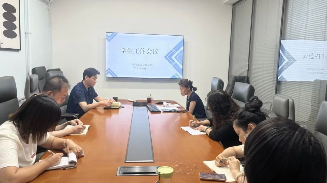 6月16日上午,国际语言文化学院召开学生工作例会,学院党委书记、副院长宇文永康,学工办主任尹娜及全体辅导员参会。