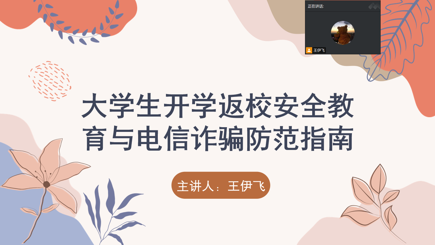 新学期伊始,为切实增强学生安全意识和防诈能力,保障学生平安顺利返校,国际语言文化学院各辅导员组织召开2025年秋季学期初返校安全教育和防范电信诈骗知识教育主题班会。