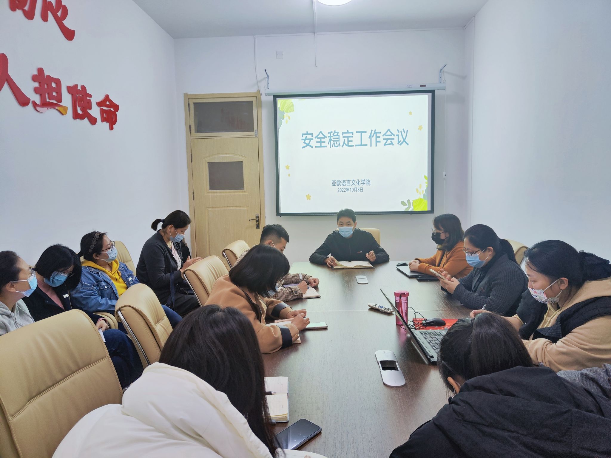 为进一步强化校园安全稳定工作的重要性,维护好校园安全稳定,2022年10月8日,pp电子游戏平台官网召开了安全稳定工作会议,本次会议由学院党委书记、行政副院长宇文永康主持,学院各系教师代表和全体学工人员参会。