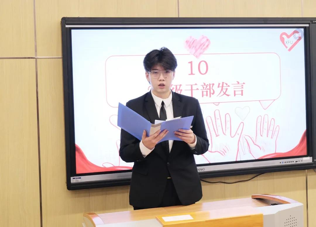 他对过去一年干部们的工作表示由衷的肯定,并祝愿即将离开的现任干部们前程似锦。他称,青年志愿者协会是一个有着良好精神传承、优秀组织文化的学生组织。希望大家能够坚守职责、担起使命,放平心态、锐意进取,共同促进青协各项工作更好、更快发展。