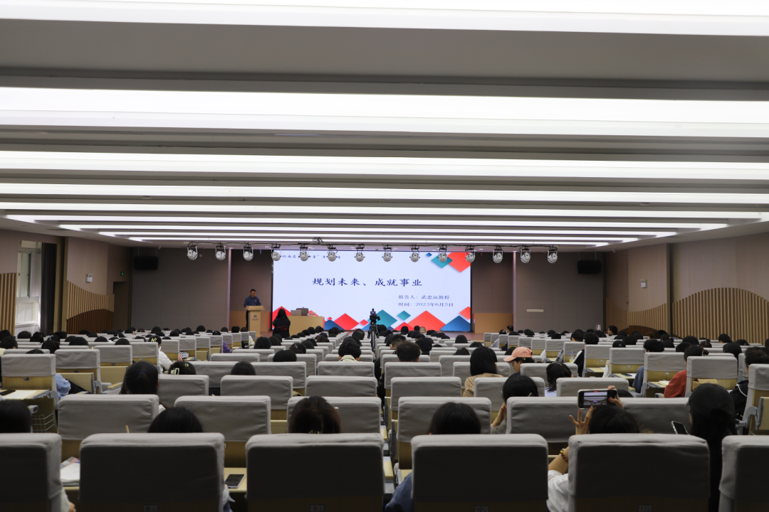 为落实立德树人根本任务,强化学风建设,深入开展以“成才观,就业观,事业观”为核心的就业育人活动,6月5日下午,学生学业发展中心在图书馆报告厅主办“规划未来,成就事业”主题讲座,副校长武忠远担任主讲。pp电子游戏平台官网党委书记、副院长宇文永康,英文学院党委书记、副院长王珍,高级翻译学院党委书记、副院长蒋小军及三个学院300余名学生聆听了讲座。讲座由学生学业发展中心副主任梅洁主持。