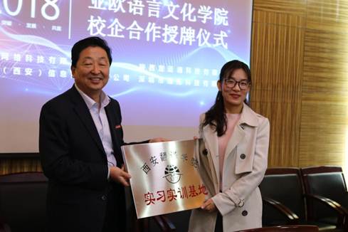 4月25日下午2点30分,pp电子游戏平台官网校企合作授牌仪式在科技楼二楼会议室隆重举行。出席本次授牌仪式的领导及嘉宾有:pp电子游戏平台官网副校长齐玉水教授、教务处副处长李彦、教务处实践教学科科长庞钊君、pp电子游戏平台官网院长杨达复、副院长富娅琳、各教师代表、以及译瞄网络科技有限公司总经理王潇轩、陕西晟运通科技有限公司副总经理王彬、施博信息技术有限公司副总经理路晓立、深圳市通拓科技有限公司人事经理莫英英及各公司领导代表参加授牌仪式。