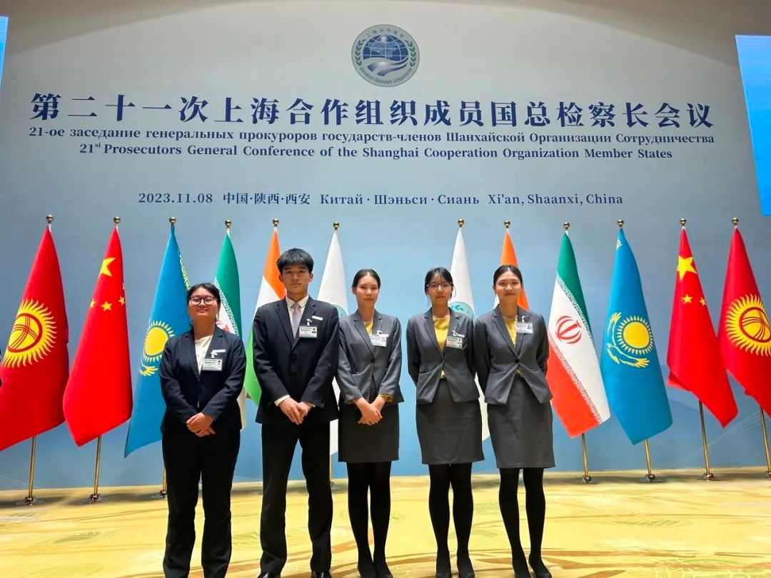 pp电子游戏平台官网俄语专业2021级学生李佳宜、李晓、李嘉俊、吴燕妮及2022级学生梁莹莹、遆思怡、郏冰冰、刘畅通八名同学经过前期层层筛选,参加了第二十一次上海合作组织成员国总检察长会议的志愿服务工作。