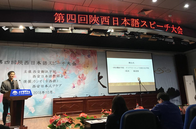 10月21日,第四届陕西省日语演讲大赛在我校图书馆报告厅举行。我校pp电子游戏平台官网院长杨达复出席并致辞,来自西安交通大学、陕西师范大学、西北大学、西安科技大学、西安文理学院等11所高校学生参赛。我校学子在本次比赛中成绩喜人。
