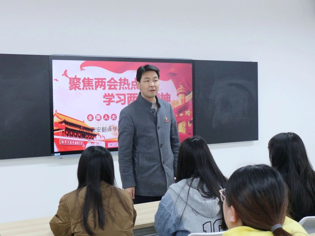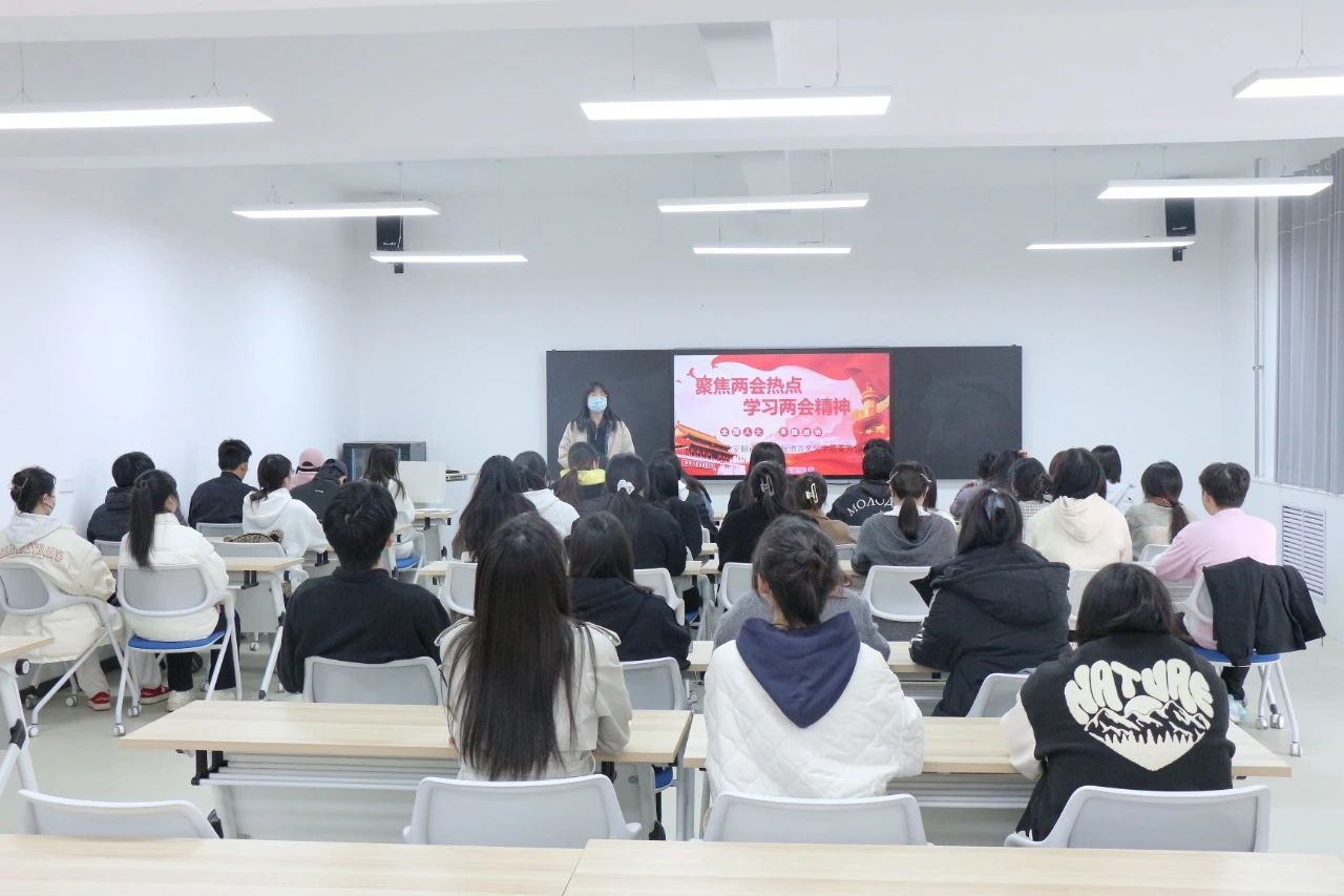 为深入学习贯彻两会精神,引导青年学子深刻领悟两会精神内涵,3月10日下午,国际语言文化学院党委组织学生党员集中学习两会精神。党委副书记宇文永康出席并讲话,党委组织委员蒋敏,第二党支部书记李潇琦以及全体学生党员到场参加。第三党支部书记黄丽娜担任主持。