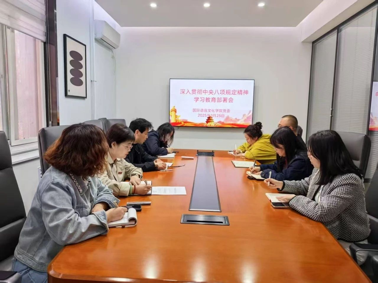 3月25日上午,国际语言文化学院党委组织召开深入贯彻中央八项规定精神学习教育部署会,学院党委书记宇文永康,党委委员及各党支部书记参加会议。