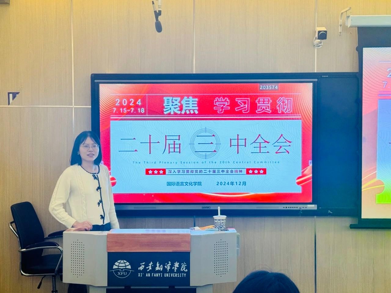 为深入学习贯彻党的二十届三中全会精神,近日,国际语言文化学院各年级辅导员组织召开“学习贯彻党的二十届三中全会精神”主题班会。全体学生参会。