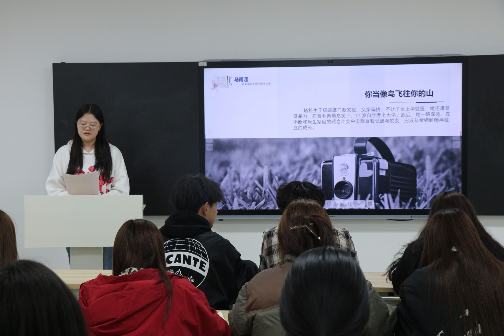 国际语言文化学院学生会代表马雨涵分享了《你当像鸟飞往你的山》,作者塔拉·韦斯特弗出身极端摩门教家庭,17岁前未上学,后自学考取大学并获剑桥大学博士学位。书中塔拉挣脱原生家庭束缚实现自我救赎,马雨涵从感恩的双重性、大学重塑自我、感恩的本质等方面进行剖析。塔拉对家庭爱恨交织,感恩既有对生命本源的感激,也有对精神暴力的反抗。大学学习使她意识到被剥夺认知自由,进而获得定义自我的话语权,成为创造命运的主体。感恩不是对伤害的妥协,而是珍视光明,塔拉拒绝“驱魔仪式”与部分家人决裂,是对感恩的深刻诠释,她感激过去的自己、教育赋予的视角和疼痛带来的觉醒。
