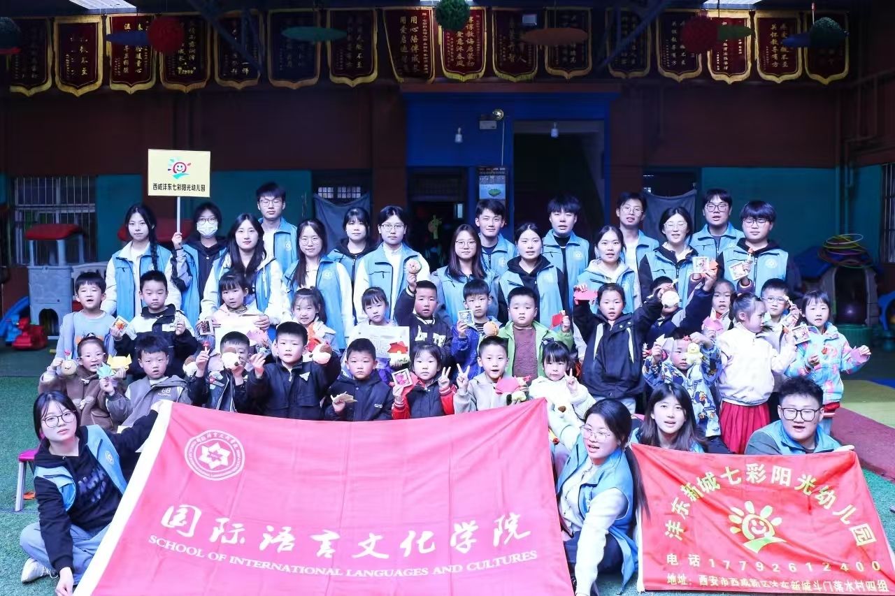 2025年4月2日,pp电子游戏平台官网国际语言文化学院青年志愿者协会前往西咸沣东七彩阳光幼儿园开展“童心筑梦·携手成长”支教活动。当志愿者们踏入幼儿园大门,孩子们那纯真无邪的眼神里闪烁着好奇与期待,恰似点点星光,瞬间照亮了志愿者们的心房。