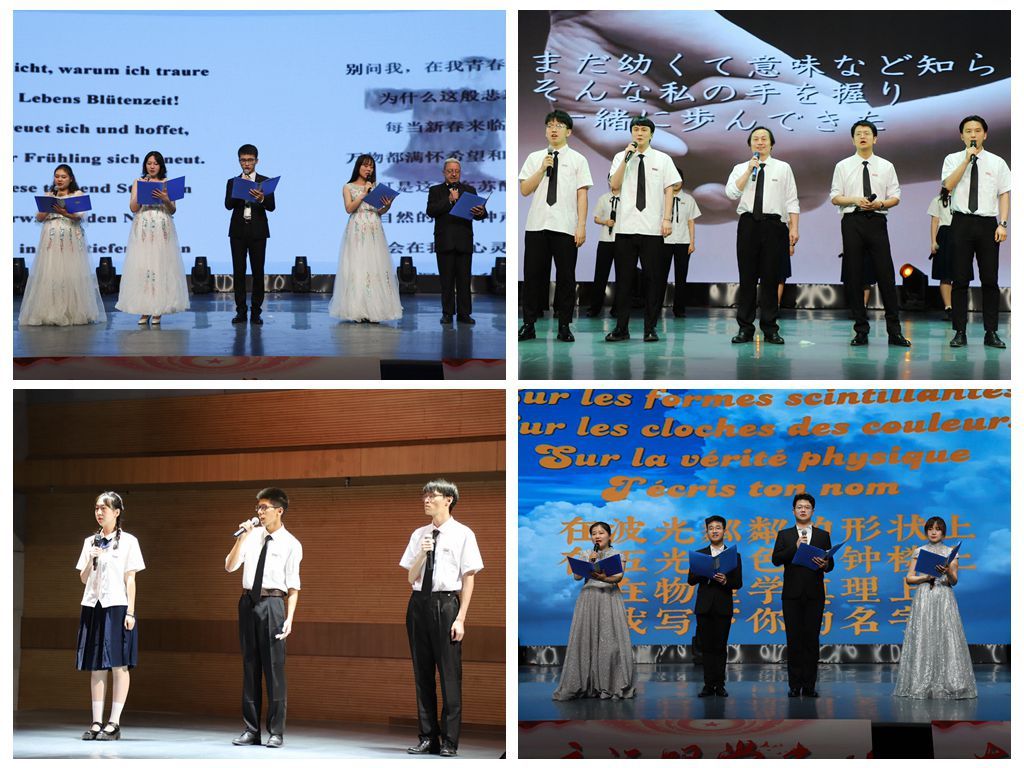 晚会在优美动听的《朝鲜语歌曲串烧》中拉开序幕。在西班牙语话剧《变色龙》中,表演者们台词娴熟、配合默契,情节扣人心弦,其精湛的演技将主人公奥楚蔑洛夫的经典形象展现得淋漓尽致,幽默诙谐的语言风格搭配精彩纷呈的舞台表现为观众带来了一场文化盛宴。诵读者们用法语朗诵文章《自由》,其吐字清晰、发音标准,字里行间充分展现了逐梦者向往远方与自由的决心,曲调间歌颂了少年们敢于逐梦的奋斗精神。非洲舞《pas comme ca》将现场气氛推向高潮,其新颖独特的舞步编排搭配律动鲜明的节奏,迸发出无限活力,表现出当代大学生努力拼搏、勇于创新的精神。