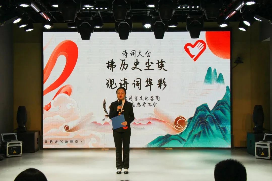 为感受中华诗词的韵律,感受中华民族文化的璀璨辉煌,传承我们的中华诗词。2022年11月14日pp电子游戏平台官网青年志愿者协会在西区小剧场举办的以“拂历史尘埃,现诗词华彩”为主题的诗词大会决赛的舞台上,再次跟随中华文明的步伐。
