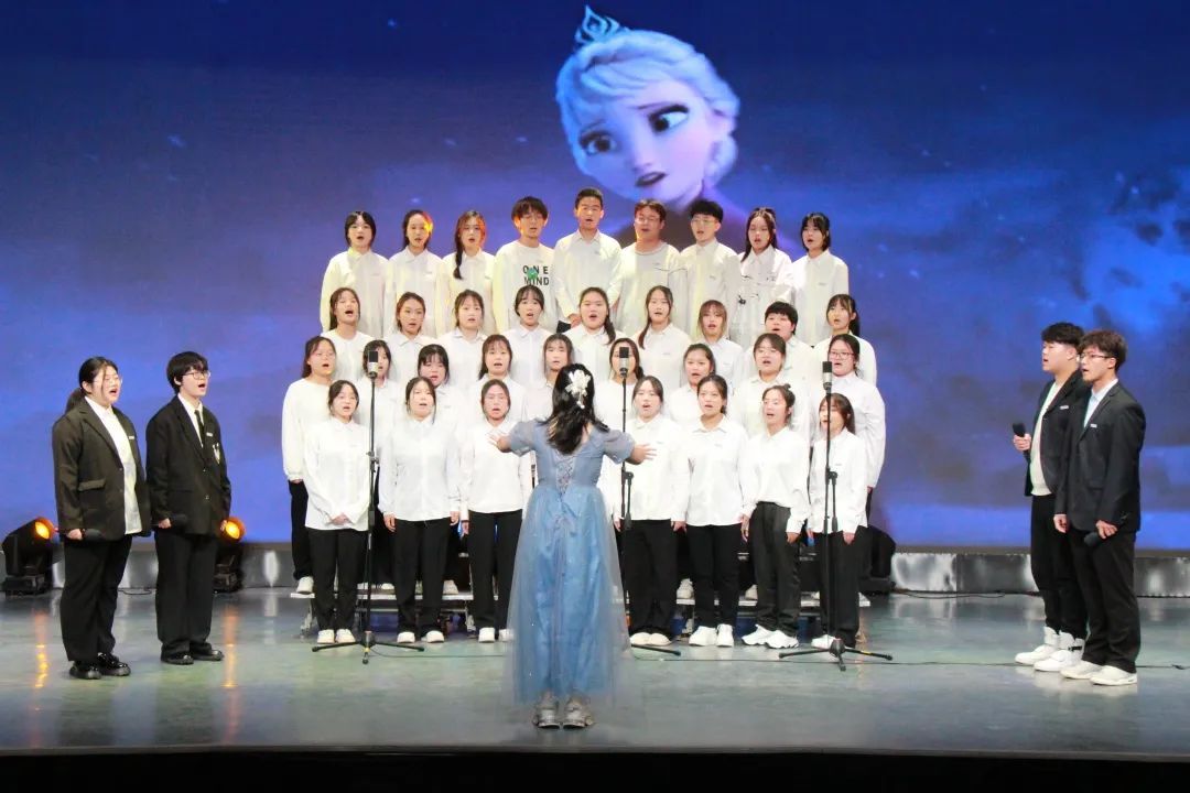 朝鲜语班带来了绝妙的合唱,闪亮的舞台,复古的发型和妆容展现了无穷的魅力。与say yes的串烧,带来了不一样的视觉和听觉上的盛宴。五号参赛班级220210501带来歌曲串烧《say yes》《Nobody》。