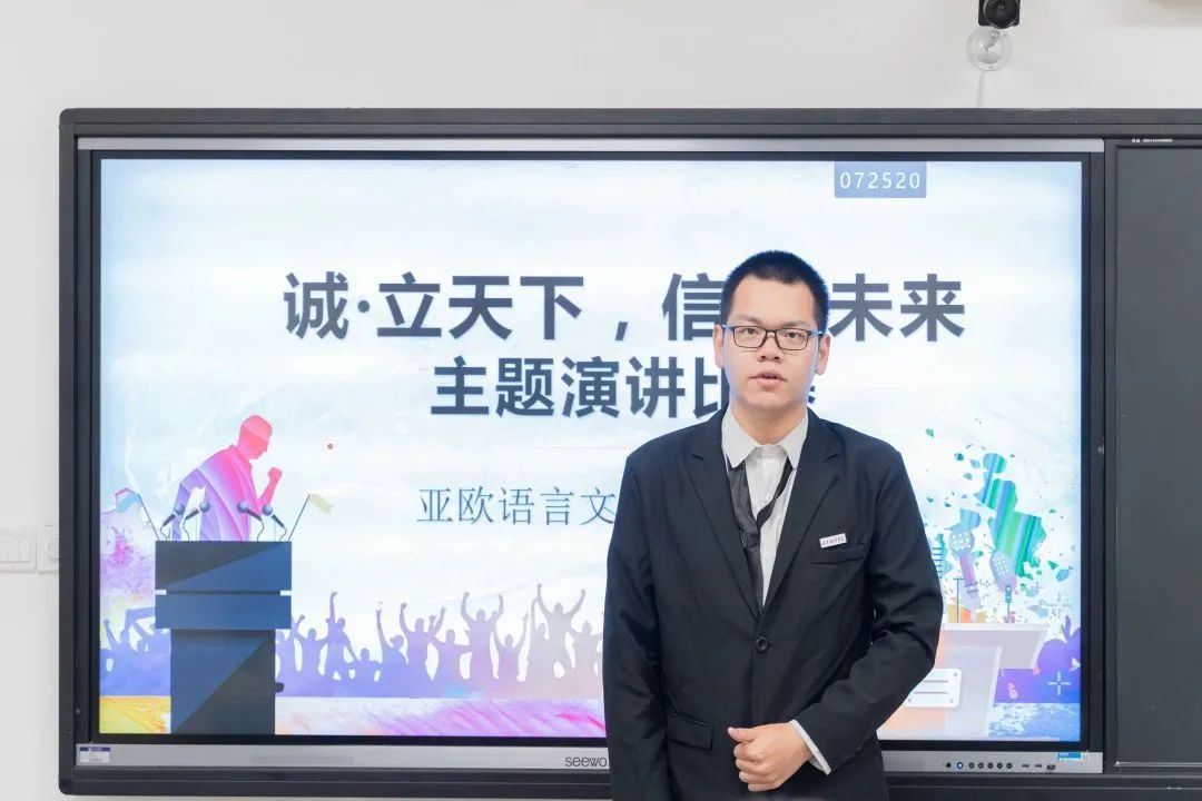10选手李子漪演讲的题目为《但见丹诚赤如血,忠为衣兮信为裳》,他深刻分析了诚信与忠诚的关系,强调了在人际关系中诚信的重要性,并举例在生活学习中展示了诚信所带来的实际效益。他的演讲语言优雅流畅,思路清晰,对于诚信如何在未来发展得到更好的体现,提出了具有思考性的问题,使人们不禁深入思索。