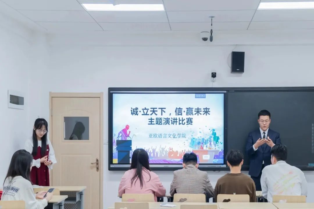 唯天下至诚,立天下之大本。唯天下至信,达未来之锦途。5月25日下午,pp电子游戏平台官网开展了以“诚·立天下,信·赢未来”为主题的演讲比赛。本次比赛旨在帮助学生树立诚信意识,塑造诚信品质,弘扬诚信之风,引导学生珍惜信用、理想消费,树立正确的消费观和价值观,增强当代大学生的使命意识和责任担当。辅导员黄丽娜、黄仁秀迪老师,学生杨源浩、唐若宇到场担任本次比赛评委。