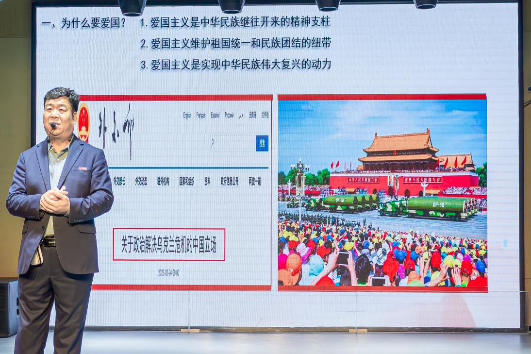 刘联军围绕爱国主义精神的内涵、爱国主义实践、新时代青年该如何做三个方面进行讲解。他指出,爱国主义是一种深深根植于心灵的情感,是大学生锲而不舍追求知识、提升自己的内在动力。