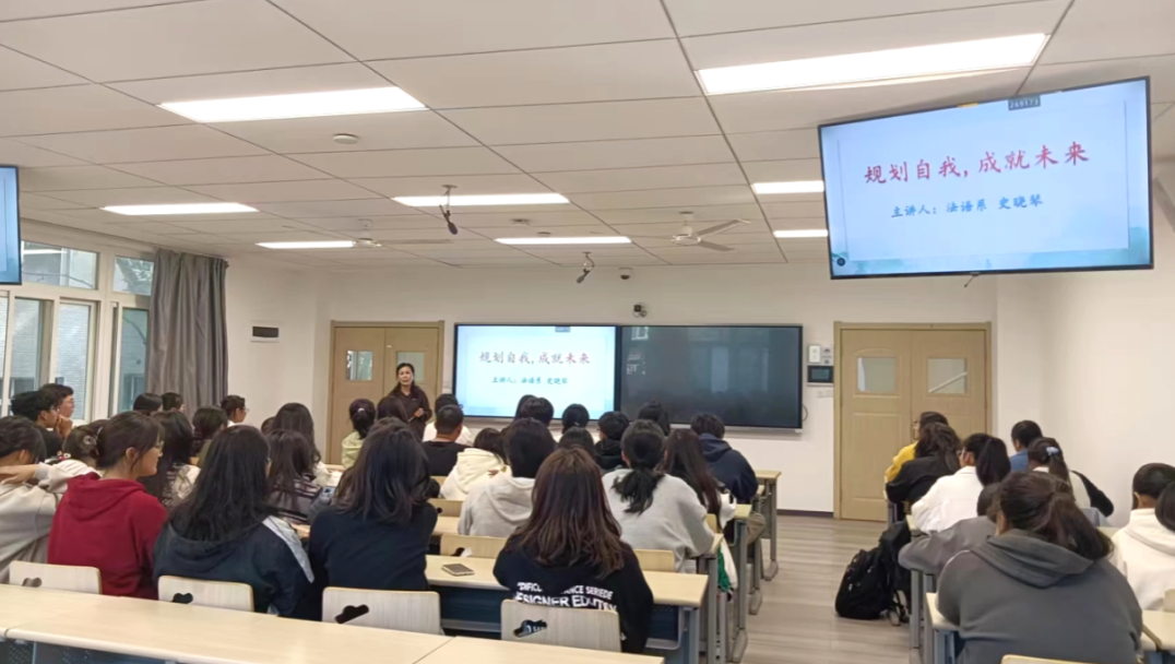 为帮助新生快速适应大学生活,明确学业发展方向及奋斗目标,激发学生的学习动力,10月18日,法语系教授史晓琴为2023级法语专业新生做了一场主题为“规划自我,成就未来”的讲座。