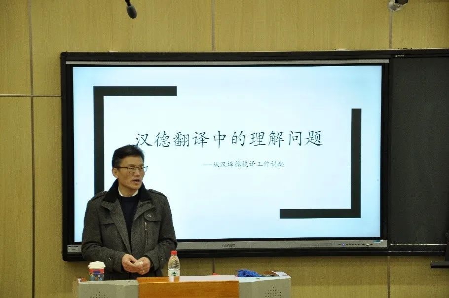 12月13日下午,西安外国语大学欧洲学院院长、西外德语专业带头人张世胜教授莅临我院,在4109T教室为德语系全体师生进行了题为“汉德翻译中的理解问题”的主题讲座,本次讲座由德语系专业负责人白莹老师主持。