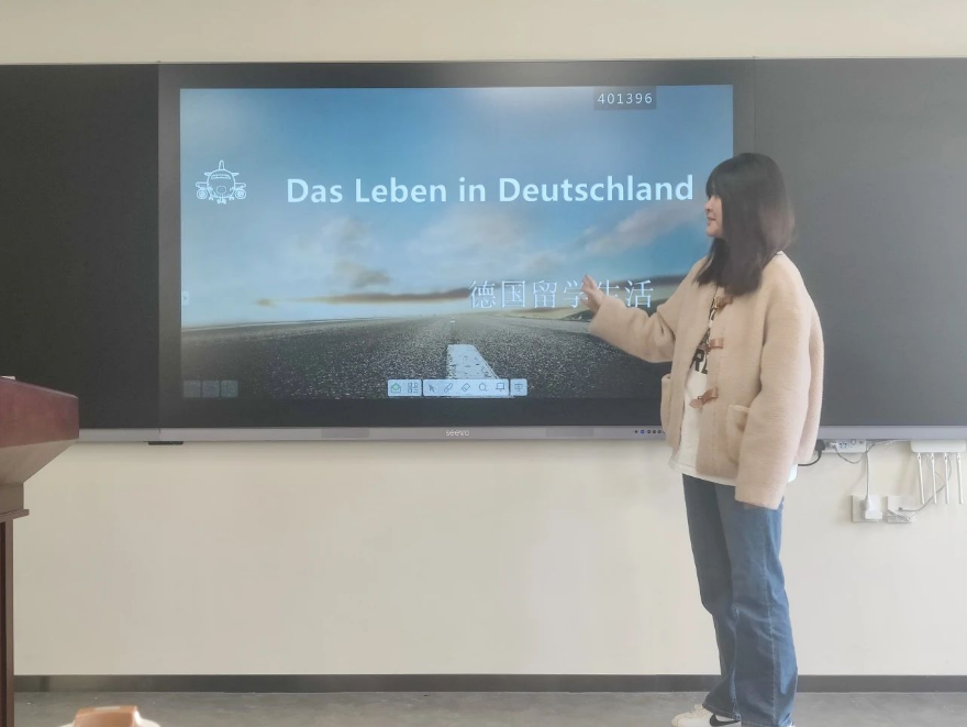 董琦老师首先对德国的教育体系、留学政策以及生活成本等方面进行了简要介绍,随后分享了她在德国的留学经历。德语系的同学们热情高涨,在互动环节,纷纷提问,分享者也耐心细致地一一解答。现场气氛热烈,大家纷纷表示通过这次讲座对德国留学有了更加全面和深入的了解。