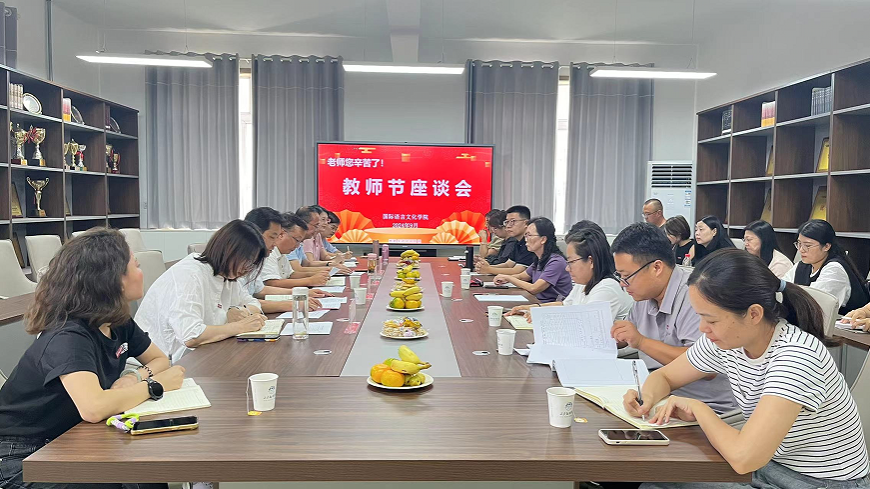 为庆祝第四十个教师节,促进教师间的交流与合作,根据《pp电子游戏平台官网2024年庆祝教师节系列活动实施方案》,国际语言文化组织开展了庆祝教师节系列活动,通过不同的方式表达对教师的感激之情。同时,学院还组织了师德师风承诺书的签署活动,强化了教师的职业道德和行为准则。9月11日下午,国际语言文化学院举办教师节座谈会。副校长郭炜出席会议,国际语言文化学院院长李庆明,党委书记、副院长宇文永康,副院长吴震、魏海燕,学院教授代表,各系办主任,新入职博士及辅导员代表参会。宇文永康主持会议。