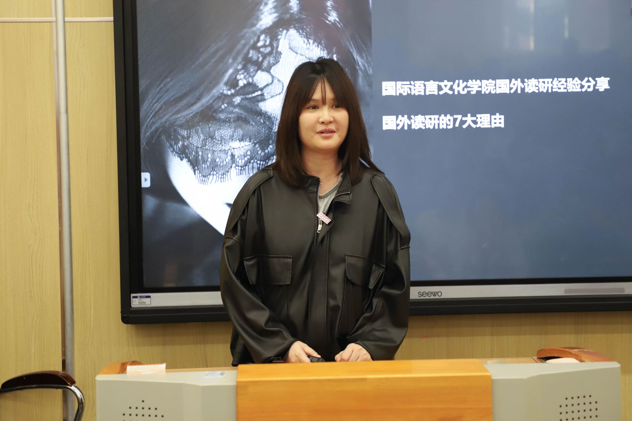 德语系专职教师董琦从国际视野出发,分享了国外研究生项目,主要包括项目种类、申请流程、奖学金机会和文化生活,她详细阐述了全球化教育背景、多元文化体验对于小语种专业学生的重要性,她的分享不仅拓宽了学生的视野,也为考虑出国留学的同学提供了宝贵的参考信息。