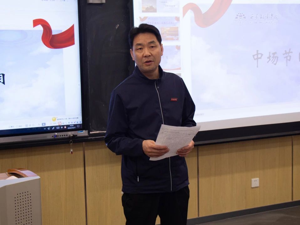 为热烈庆祝中华人民共和国成立75周年,筑牢中华民族共同体意识,结合校党委《关于举办“培根育魂 石榴花开”主题演讲比赛的通知》要求,10月17日下午,国际语言文化学院党委举办“培根育魂 石榴开花”主题演讲比赛决赛。学院党委书记、副院长宇文永康,学工办主任尹娜应邀出席,团总支书记陈福礼,辅导员黄丽娜、李潇琦、黄仁秀迪、孙金娟担任评委。