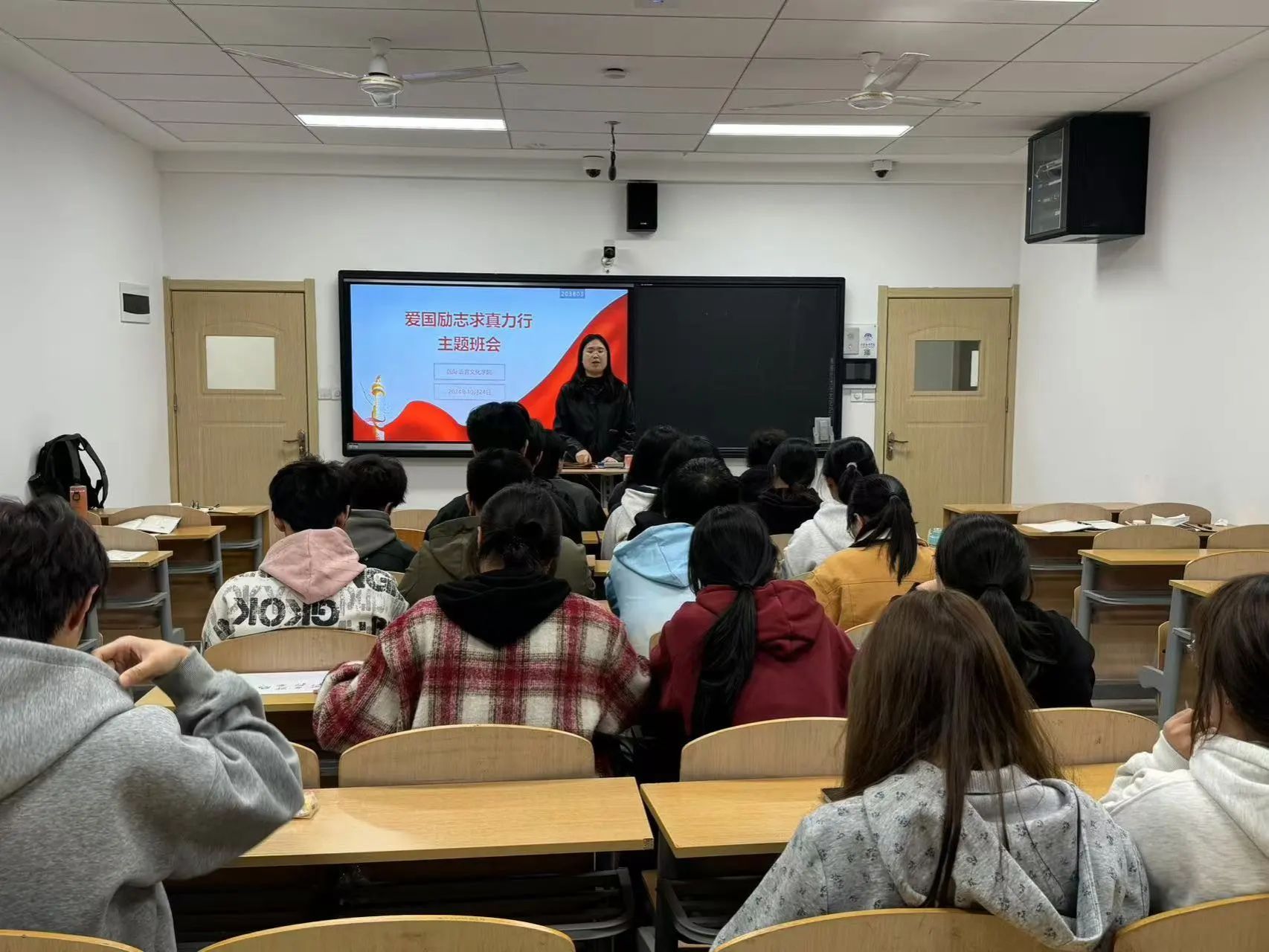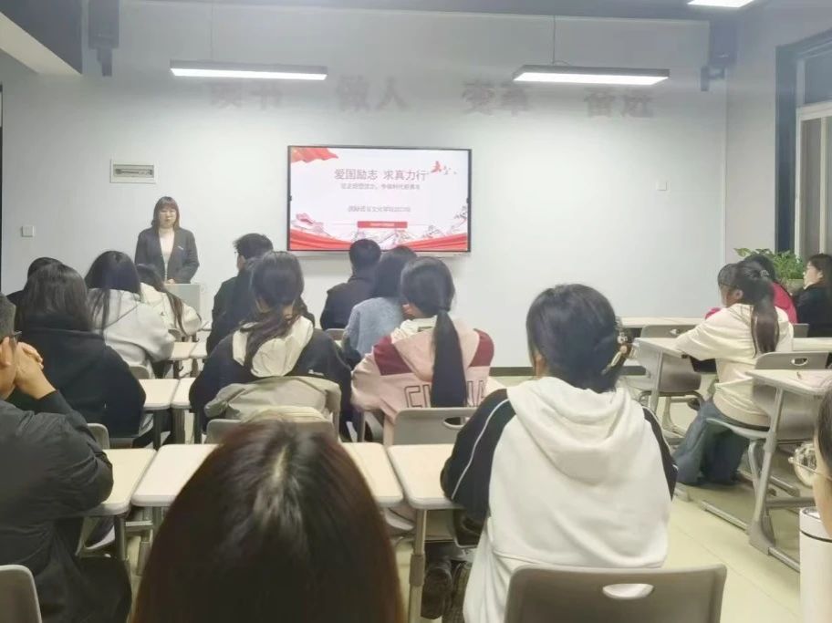 为深化学生的爱国主义教育,激发学生的创新精神,促进学生的全面发展,近日,国际语言文化学院组织召开“爱国励志,求真力行”主题班会。全院学生参会。