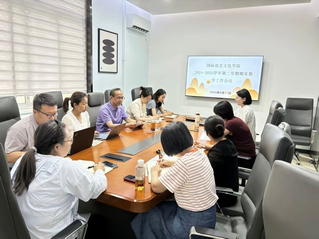 为全面总结本学期教学工作,科学谋划期末教学安排,确保教育教学质量稳步提升,6月17日,国际语言文化学院在三号楼创客空间会议室组织召开期末教学工作会议。学院院长李庆明主持会议,学院领导班子、各系、办负责人参会。