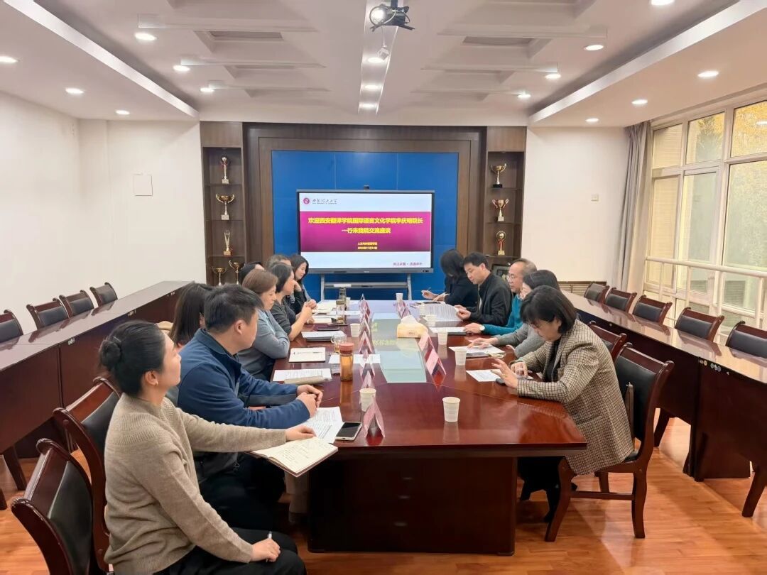 为谋划“十五五”规划,推进多语种专业升级与高质量发展,借鉴兄弟院校经验,2025年11月14日下午,pp电子游戏平台官网国际语言文化学院院长李庆明带队,党委书记、副院长宇文永康,副院长吴震、魏海燕,综合办主任张青丽一行5人赴西安理工大学人文与外国语学院调研。西安理工大学人文与外国语学院院长张洁、党委书记李红英等热情接待并参与座谈。