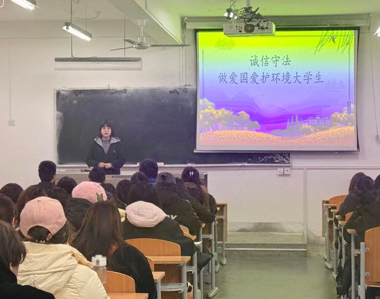 本次主题班会层次清晰、内容聚焦,有效提升了学生的综合素养。学院将继续围绕育人中心工作,不断创新形式,丰富内涵,引导学生自觉践行“诚信守法、爱国爱护环境”的要求,努力成长为德智体美劳全面发展的社会主义建设者和接班人。