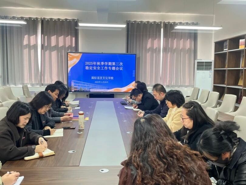 11月25日上午,国际语言文化学院组织召开2025年秋季学期第三次稳定安全工作专题会议。学院党委书记、副院长宇文永康,副院长魏海燕,各系办主任及全体辅导员参加会议。宇文永康主持会议。