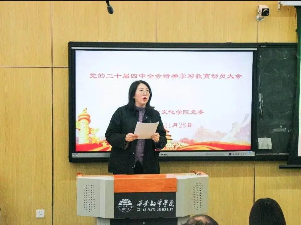 为深入学习领会、全面准确把握并认真贯彻落实党的二十届四中全会精神,引导全院师生党员统一思想、凝聚共识,11月28日下午,国际语言文化学院党委组织召开深入学习贯彻落实党的二十届四中全会精神学习教育动员大会。学院全体师生党员、发展对象及入党培养对象参会。