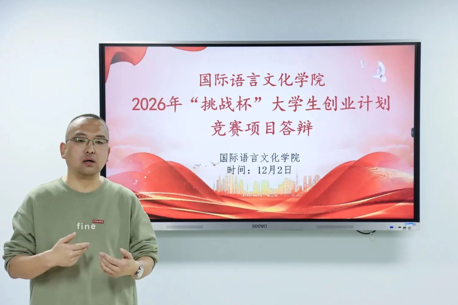 为激发学生的创新精神与创业意识,培育优秀创业项目,12月2日下午,国际语言文化学院在3120教室举办2026年“挑战杯”大学生创业计划竞赛院级决赛。学院特邀综合办公室主任张青丽、德语系主任王勃、法语系主任王姗姗、西俄系主任张力心、西班牙语教研室主任杨茜担任评委。