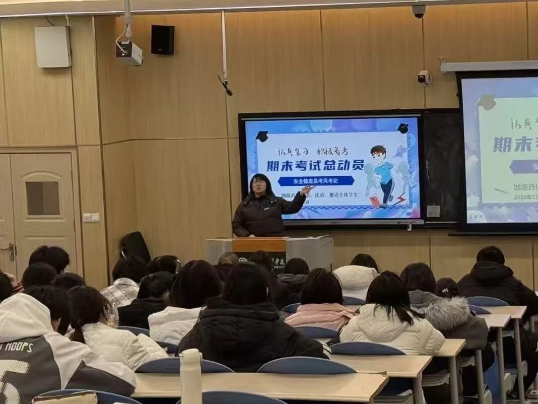 通过此次班会的召开,同学们不仅进一步明确了考试纪律的“红线”与“底线”,筑牢了诚信应考的思想防线,也全面增强了安全防范意识,为维护期末校园的安全稳定、促进优良学风的形成奠定了坚实基础。国际语言文化学院将持续关注学生的成长与发展,坚持教育引导与管理服务相结合,为培养具有国际视野、语言能力突出、品德修养过硬的高素质人才营造良好育人氛围。