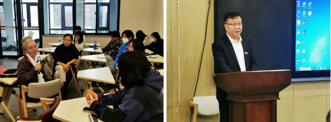 会上,李庆明代表学院对凯琳娜·马丁教授的到来表示热烈欢迎,同时介绍了凯琳娜·马丁教授的教育背景及生活经历,凯琳娜·马丁教授文理双全,拥有医学博士及文化研究博士双学位,精通英语和汉语,对中国传统文化颇有研究。
