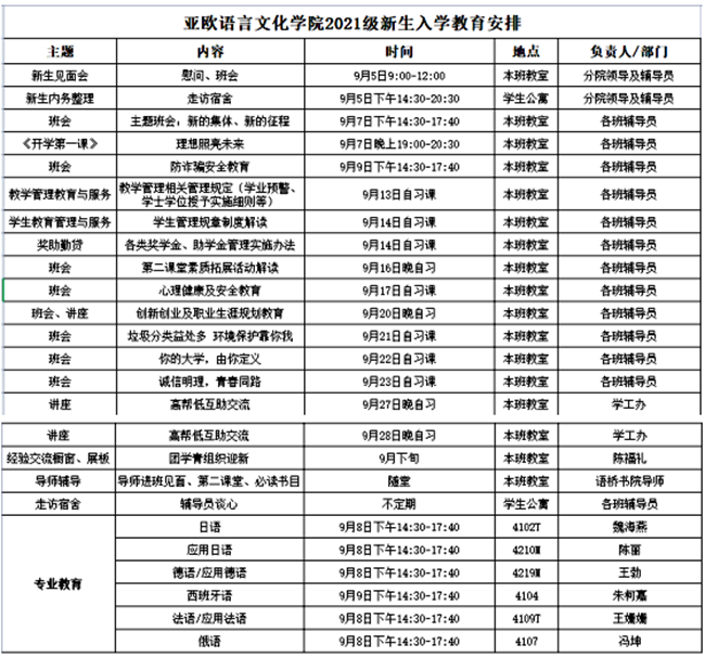 亚欧院2021级新生入学教育安排